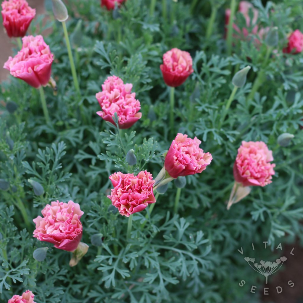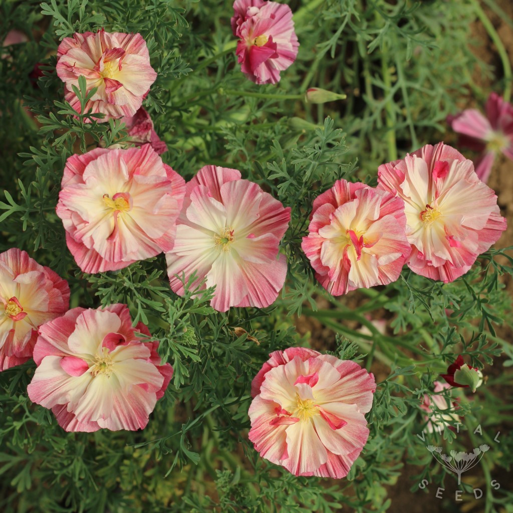 A stunning and unique variety producing mainly double flowers of creamy rose and cranberry. This is a new variety for us and we really love it. It’s a real show stopper. It flowers over a very long season, especially if picked or dead-headed. California poppies are drought tolerant so very low maintenance.