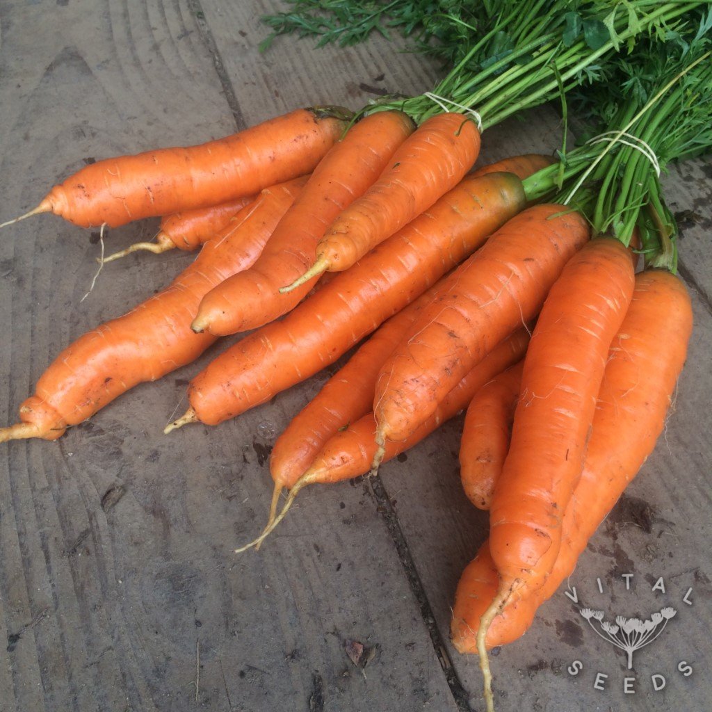 Fast maturing carrot perfect for early sowings. Originally from France but grown in this country for decades as a kitchen garden favourite, this is a classic carrot variety of the half-long type. Reaching up to 17cm in length and 3-4 cm in diameter, it is a sweet, bright orange, blunt, cylindrical root, round at the top and bottom. It has fine texture and delicate flavour with almost no core. It is ideal for early sowings but can delight you with a tasty crop throughout the year as well.