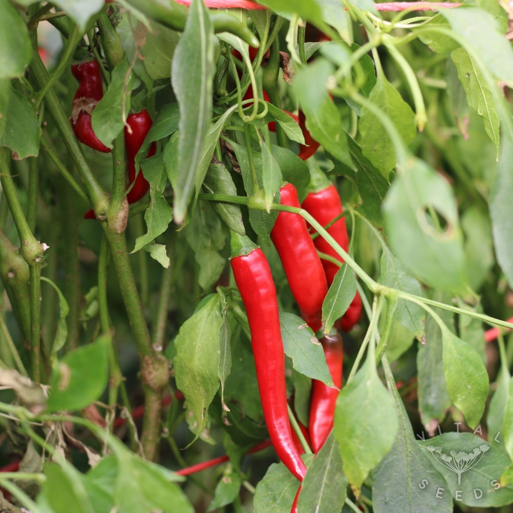 An improved cayenne type chilli producing long pointy red fruits which pack a punch. This is one of our staple chilli varieties to grow. It is very reliable and does exactly what it says on the tin – for better or worse!