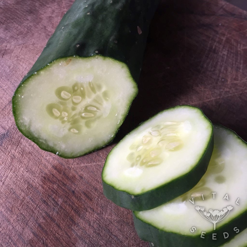 Plant out in 50x50cm spacing into fertile soil with added compost or well-rotted manure. Cucumbers can suffer from transplant shock when planted in their final position, so be sure to handle carefully when planting out.