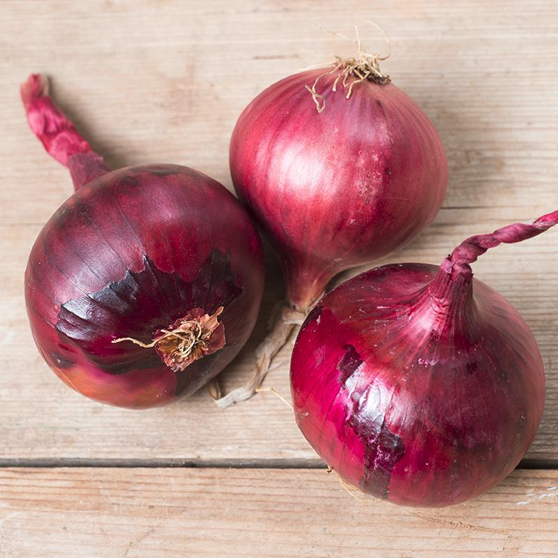 A mid-late variety with deep red skin, suitable for storage as well as bunching when young. Red Baron is a classic red onion producing large globe-shaped bulbs with a punchy flavour. They can be grown as a main-crop onion but are also suitable for bunching when picked young.