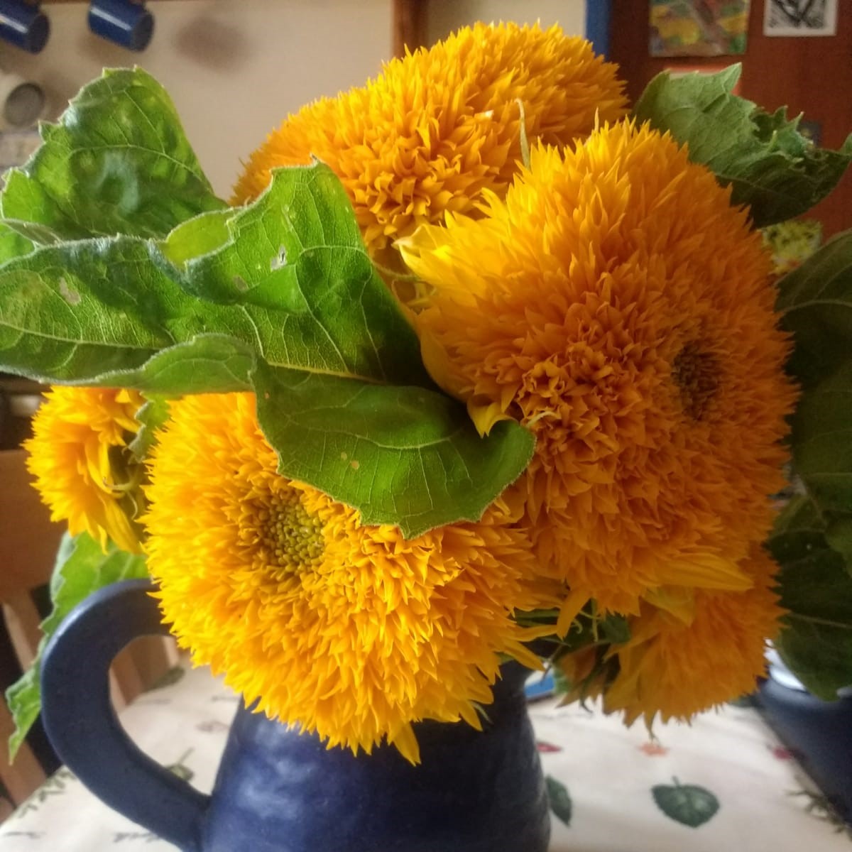 A quirky dwarf variety producing fluffy ultra-double blooms. This unique sunflower is named Teddy Bear due its very soft pompom like blooms with almost no smooth centre. The plants have a branching habit so will produce multiple flowering stems on each plant.