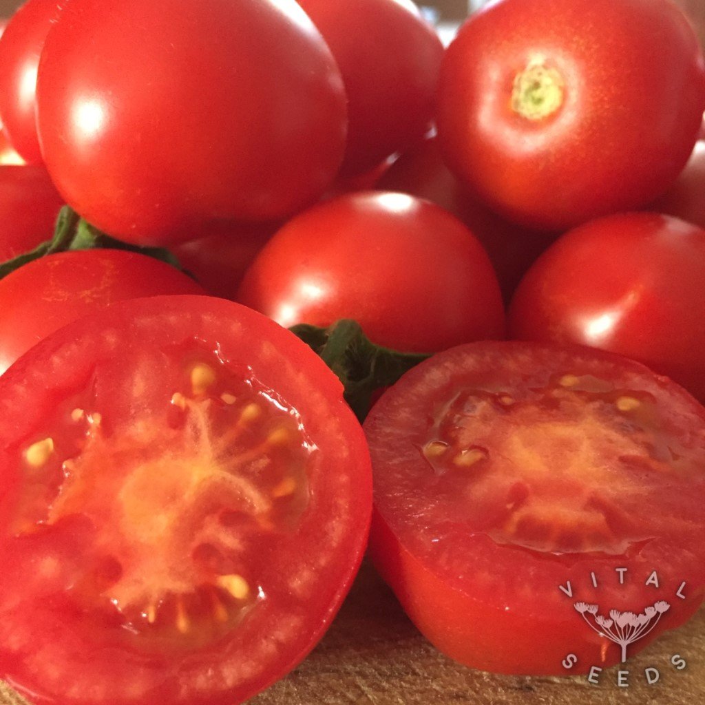 A bright red greenhouse tomato with an exceptionally aromatic flavour, bred specifically for organic cultivation. This variety was bred 1996 in Germany by Ulrike Behrendt. Flavour and resistance to fungal disease was the main focus of the selection. It can deal well with a low intake of nutrients which promotes good taste. The firm fruits should be left on the plant until fully coloured and will keep for a long time on the plant. They can be stored and will also after-ripen. The plant has strong dark green almost shiny leaves, and short internodal length.