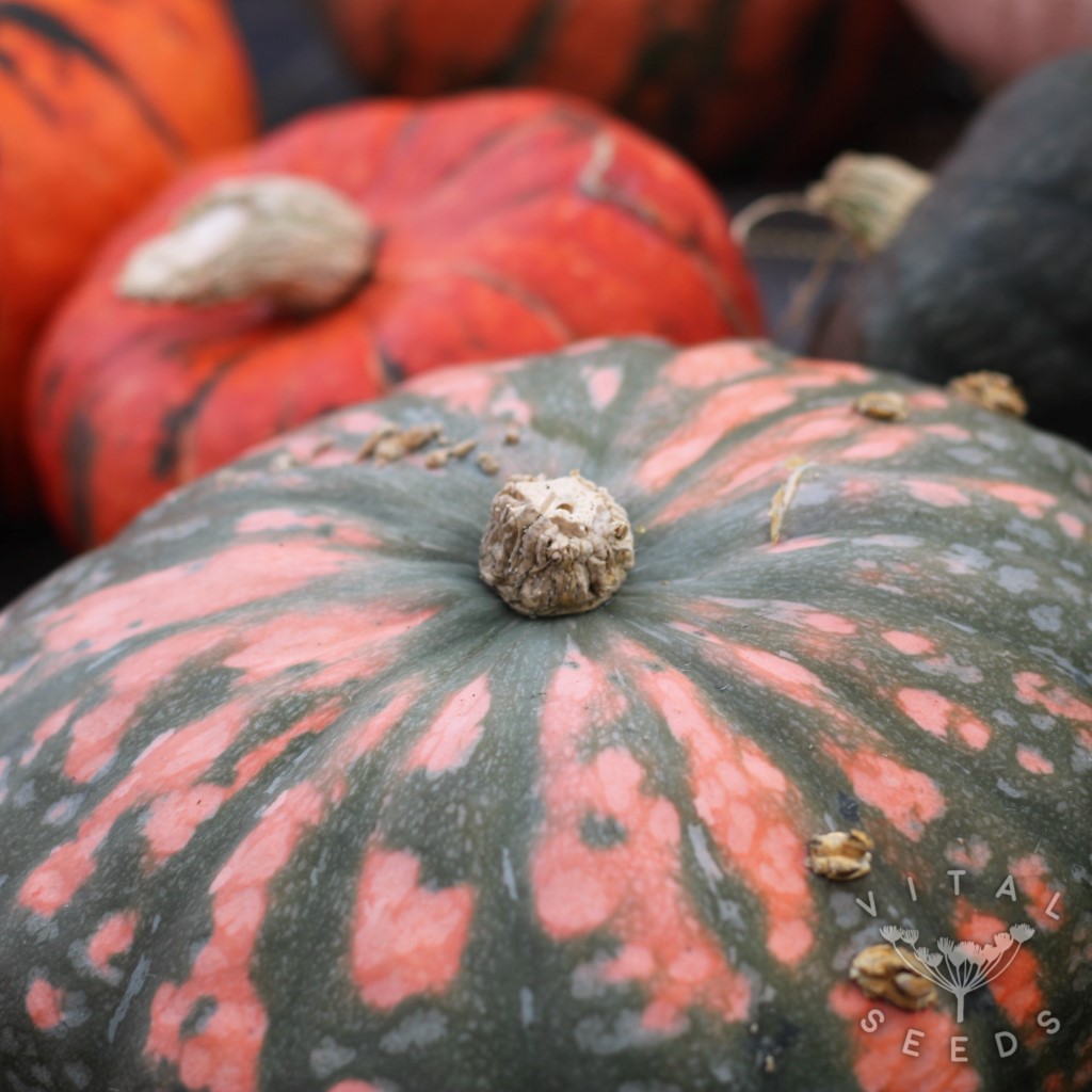 The great diversity of genes will make a beautiful range of colours and shapes with amazing flavours. We are excited to be offering such an enthusiastically bred strain of a landrace squash.
